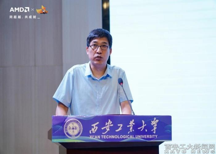 西安工業(yè)大學(xué)機(jī)電工程學(xué)院院長(zhǎng)王洪喜發(fā)表致辭,他表示我校高度重視數(shù)字素養(yǎng),積極培養(yǎng)創(chuàng)新型人才,去培育新青年棟梁,推動(dòng)國(guó)家數(shù)字經(jīng)濟(jì)化發(fā)展,并希望全體同學(xué)勇于創(chuàng)新,發(fā)現(xiàn)潛能。
