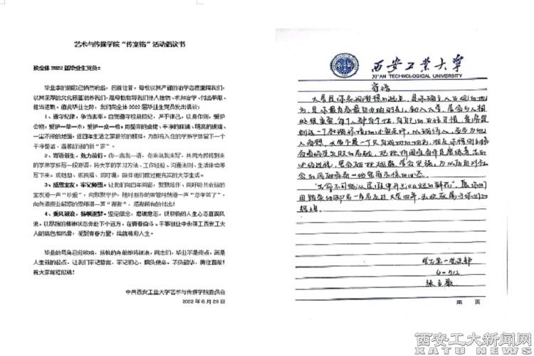 (本網訊)為持續加強學生黨員教育,充分發揮學生黨員先鋒模范作用,在2022屆學生黨員畢業之際,藝術與傳媒學院黨委向2022屆全體畢業生黨員發出倡議發出“傳室銘”活動:倡導黨員同志遵守紀律,爭當表率;寄語新生,勉力前行;感恩室友,牢記師恩;乘風破浪,揚帆逐夢。倡議發出后,全體畢業生黨員積極響應,在離校前夕,自覺將宿舍清掃干凈并恢復到剛入住的狀態,同時向即將入住的新一屆學弟學妹留下寄語。