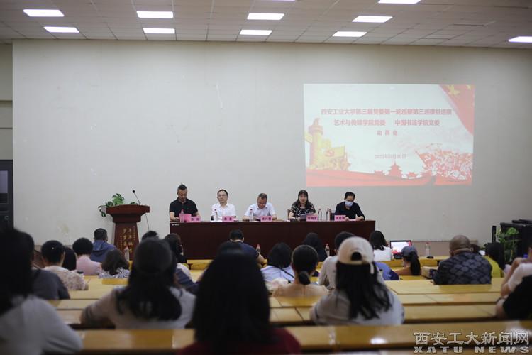 巡察組全體成員,藝術與傳媒學院、中國書法學院班子成員、各黨支部書記、科級干部、學科帶頭人、教職工、學生代表等90余人參加會議。