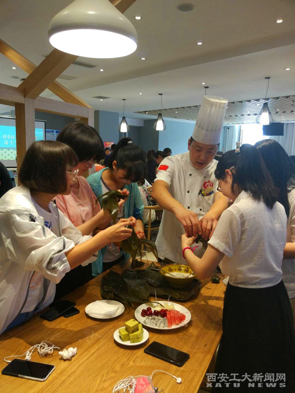 活動現場,工作人員為師生們講解了粽子和香包的制作方法,片刻功夫,一片片清香的粽葉,一粒粒晶瑩的糯米,就變成了形狀各異的粽子,頗具特色。親手制作的香囊,送給自己或者最愛的家人,承載著對幸福的美好愿望和對他人的美好祝福?;顒幼詈?,傳統點翠工藝的講解和現場演示,更是引起了師生們的濃厚興趣,讓人感嘆中國傳統工藝的博大精深。