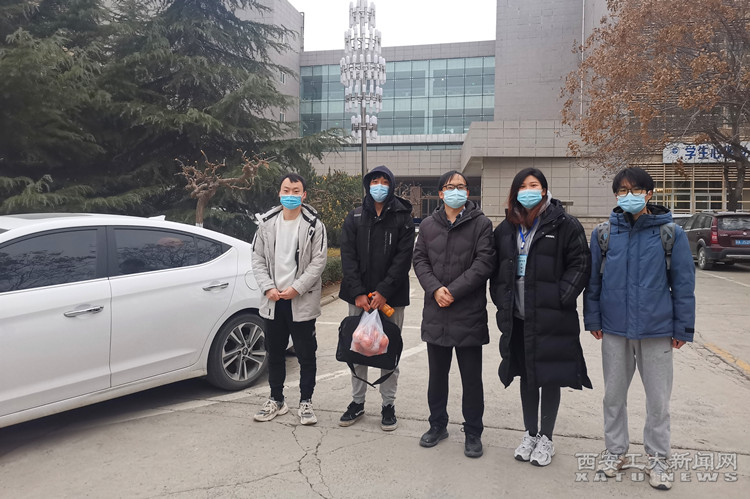 21日早晨,未央校區(qū)突然降溫,天空開始飄雪。學(xué)院教師王洪喜、付雷杰、祝強(qiáng)三位老師在寒風(fēng)中提前到達(dá)圖書館前,等候去往周至縣、鄠邑區(qū)、藍(lán)田縣的8名學(xué)生。接到學(xué)生后,幾位老師幫學(xué)生搬運(yùn)行李,提醒帶好證明材料和隨身物品,親自驅(qū)車護(hù)送學(xué)生返鄉(xiāng),讓學(xué)子們感受到了“家”人般的溫暖。