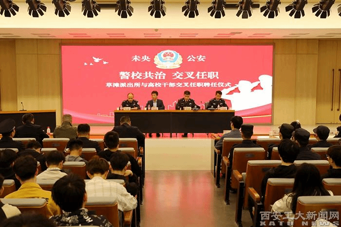 (本網訊)4月21日上午,西安市公安局未央分局在我校圖書館報告廳舉辦了草灘派出所與北郊3所高校“警校共治,交叉任職”聘任儀式。副校長劉發林、公安未央分局副局長崔同利、草灘派出所所長許朝睿,陜西科技大學、西安醫學院和我校學工、保衛部門負責人,草灘派出所部分民警和我學校100余名學生參加了聘任儀式。儀式由草灘派出所教導員李江濤主持。
