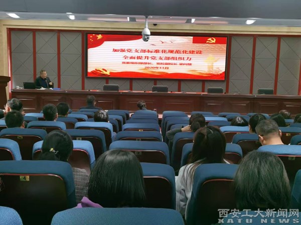(本網訊)為深入學習貫徹新時代黨的建設總要求和新時代黨的組織路線,推動全面從嚴治黨向基層延伸,著力加強黨支部標準化規范化建設,11月19日下午,黨委組織部在未央校區舉辦2020年黨支部書記專題培訓會,黨委組織部部長、黨校副校長梁閃慧就“加強黨支部標準化規范化建設,全面提升黨支部組織力”做專題培訓,全校黨支部書記、學院專兼職組織員120余人參加了培訓,培訓由黨委組織部副部長、黨校辦公室主任姜冰清主持。