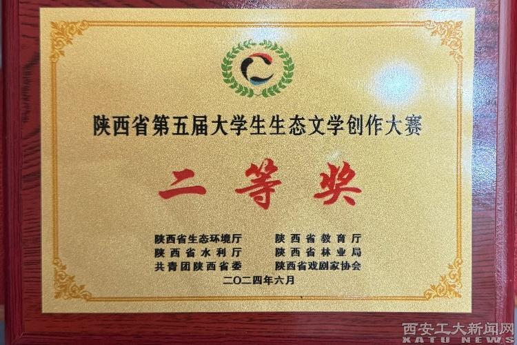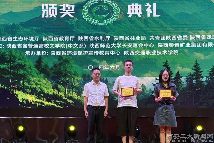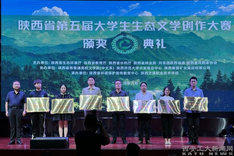 (本網訊)6月13日下午,由陜西省生態環境廳、省教育廳、省水利廳、省林業局、團省委和省戲劇家協會主辦,陜西省環境保護宣傳教育中心、陜西交通職業技術學院承辦的陜西省第五屆大學生生態文學創作大賽頒獎典禮在陜西交通職業技術學院大學生藝術中心隆重舉辦。西安工業大學文學院23級研究生劉溢、羅瑜亭、尚志閣等榮獲省級二等獎,23級研究生王凡、21級本科生張源源、楊思雨獲得優秀獎,文學院榮獲優秀組織獎。
