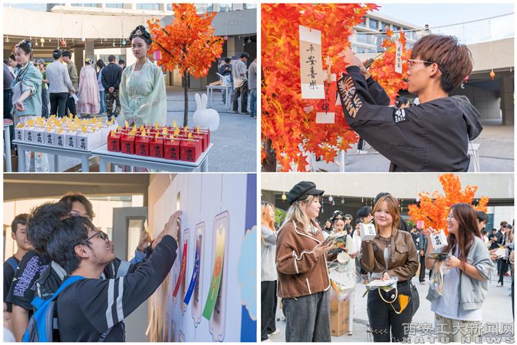 活動以禮敬中華優秀傳統文化為出發點,融合多彩集市、古風競技、漢服巡游、文創手作體驗等多種元素。活動現場,工作人員換上古裝,帶領師生們走進國風雅韻的中秋美景。猜燈謎、投壺、射箭游戲全程人頭攢動,兔子花燈、飄漆團扇、古風發簪等氛圍感十足的精美手辦吸引了一波又一波參與者。通過輕松趣味的游戲體驗互動,師生不僅增強對中秋傳統民俗文化的深入了解,又在歡聲笑語中共同邂逅西工秋日。在祝福祈愿環節,師生們寫下對自己、對親友、對家人、對學校最美好的愿望和祝福,用簡單的筆墨傳遞最深的心意。