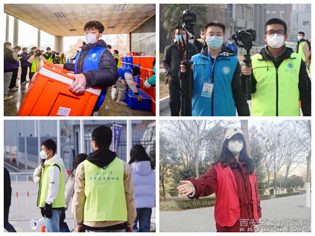 學院教師在課余時間及時關注防疫通知,得知招募志愿者的消息后,第一時間報名,在小區開展站崗執勤、運送蔬菜、維持秩序等志愿服務工作。在研究生招生考試期間,學院教師主動自駕送研考學子前往考點。風雪送考路,溫暖師生情。在教師的帶領下,學院學子也主動請戰,積極響應學校號召,紛紛向校團委、國護隊、院團委等組織報名,穿上光榮的小馬甲,迅速組建成一支支政治性強、素質過硬、勇于擔當的青年志愿者先鋒隊。他們在各類志愿服務崗位發光發熱,以切實行動應對疫情挑戰,展現了新生代學子為同輩服務、為師生奉獻的青春力量。