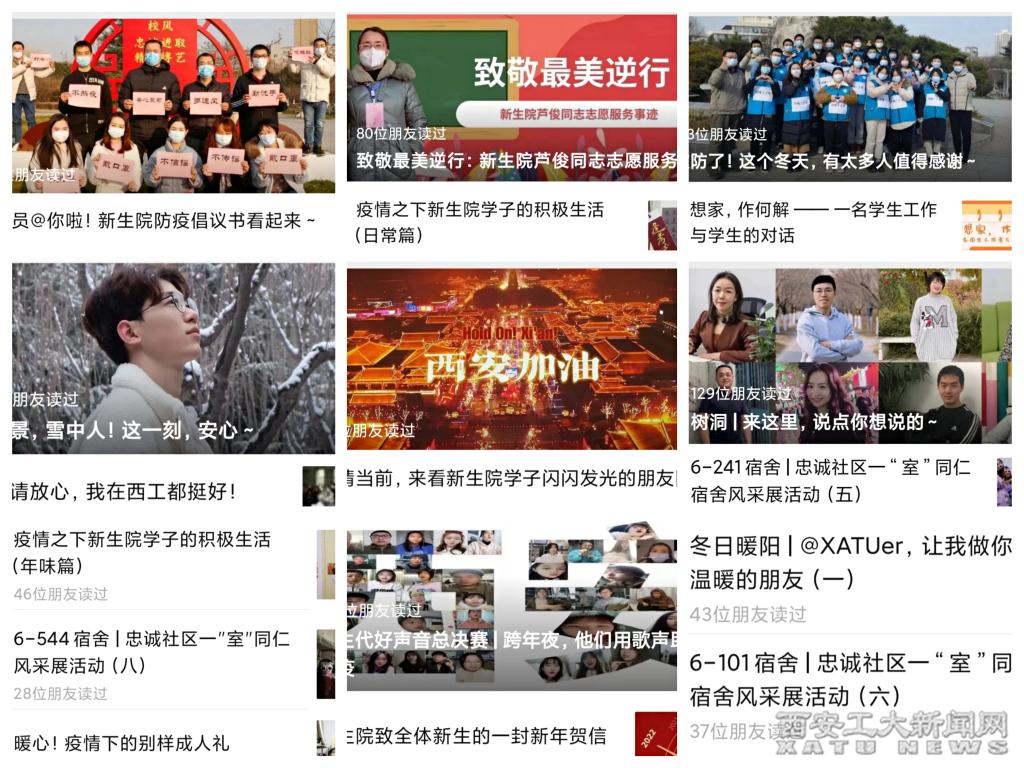 面對嚴峻復雜的疫情防控形勢,學院充分發揮網絡育人優勢,利用好新媒體平臺,圍繞“助力抗疫,溫暖西工”主題,創新開展一系列“云”思政工作。“云”上科普:《重要提醒!疫情當前@新生院學子》。“云”上倡議:《疫情當前,來看新生院學子閃閃發光的朋友圈》《雪中景,雪中人!這一刻,安心~》《爸媽請放心,我在西工都挺好》。“云”上育人:《我想家,作何解——一名學生工作者與學生的對話》《破防了!這個冬天,有太多人值得感謝》。“云”上心理:《樹洞|來這里,說點你想說的》《讓我做你最溫暖的朋友》。“云”上活動:《新生代好聲音,歌聲助力抗疫》《一“室”同仁宿舍風采展》。“云”上運動:《封宿版運動指南,新的一年要健健康康》。截至2022年1月4日共發出推送34條,發出視頻11條,閱覽量近8萬人次。有效聯動全體師生,有力推動疫情防控工作高效開展。
