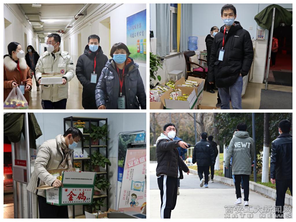 疫情就是命令,防控就是責任。學校啟動制動和封閉管理后,學院領導和學工人員共17人第一時間協調個人事務,三言兩語告別家人,匆匆背起行囊,入住未央校區。他們當中,有半歲孩子的爸爸,有還在哺乳期的媽媽,有古稀老人的女兒,有一家頂梁柱的兒子。這一走,不知歸期,但卻義無反顧。返校后,全體輔導員與學生同吃同住,24小時全天候開機,隨時隨地待命,時刻緊繃防疫這根弦,全力守護學生健康和安全。線下,他們深入宿舍解讀防疫須知,俯下身子聆聽學生所思所想,調解宿舍摩擦矛盾……他們是無畏的戰士、逆行的勇士;線上,在學生群里及時發布重要通知,關懷學生吃飽穿暖,疏解學生心理壓力……他們是學生的知心人、暖心人、貼心人。