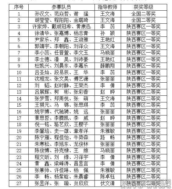 (本網訊)11月6日,2023年“高教社杯”全國大學生數學建模競賽獲獎名單公布,我校參賽53隊,共獲獎28項,其中全國二等獎2項,陜西賽區一等獎9項,二等獎16項,獲獎數量再創新高。