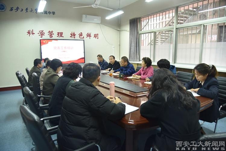 (本網訊)為深入推進黨建“雙創”工作,不斷提升黨務工作骨干能力和水平。12月5日下午,附屬中學黨總支舉辦了黨務工作能力提升培訓會。附屬中學黨總支委員、各支部委員參加了培訓會。
