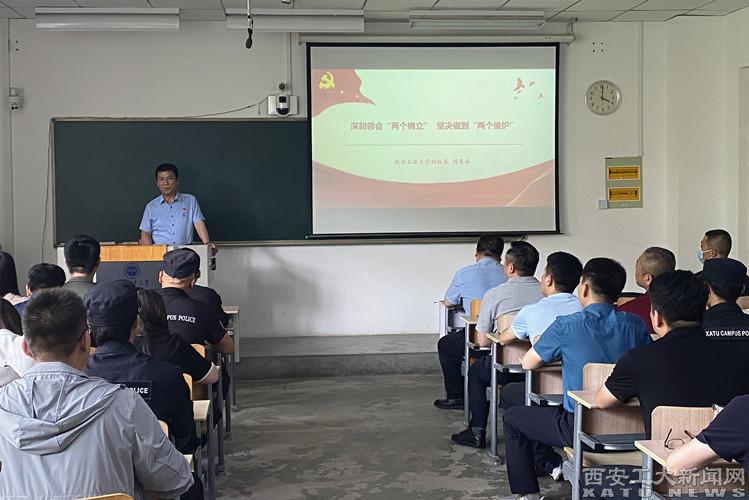 (本網訊)6月7日,校黨委委員、副校長劉發林為武裝保衛處黨支部黨員講授了題為《深刻領會“兩個確立” 堅決做到“兩個維護”》的專題黨課。