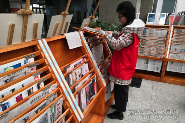 本次志愿服務(wù)活動(dòng)分為期刊整理、少兒圖書(shū)整理、報(bào)刊整理和自助圖書(shū)服務(wù)四個(gè)部分,志愿服務(wù)在濃郁的書(shū)卷香氣下有序展開(kāi)。志愿者們推著小車將書(shū)籍按順序整理好之后運(yùn)送至對(duì)應(yīng)區(qū)域,細(xì)心地按編號(hào)將雜亂的書(shū)籍一本本擺放整齊,按期號(hào)將同類別的報(bào)刊整齊地夾在報(bào)刊架上,過(guò)期報(bào)刊被取下后疊放整齊放至專門區(qū)域。