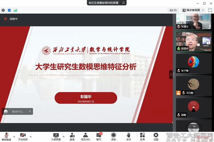 動員會結束后,我校研究生建模大賽組委會還邀請了西北工業大學彭國華教授給全體參賽學生做了題為《研究生數學建模競賽賽題理解及思維方法》的培訓講座。彭教授長期擔任研究生數學建模競賽國家組委會委員,對競賽的命題、思維、理解、解答等方面有著深入的研究。本次講座從真題出發,向同學們詳細講解了研究生數學建模競賽的特點及競賽的答題技巧、得分失分點等內容。