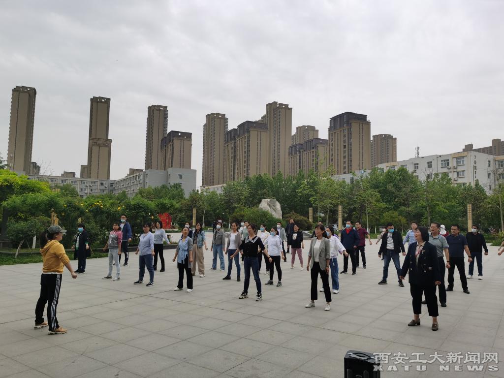 2022年4月22日中午,學院教師在體育系孫萌教授的帶領下在博苑廣場列隊、熱身,跳起了歡快的健身操。隨后,教工分組舉行踢毽子、跳繩比賽,在啦啦隊的加油聲中,參賽隊員們信心滿滿,你追我趕,比賽現場氣氛熱烈。