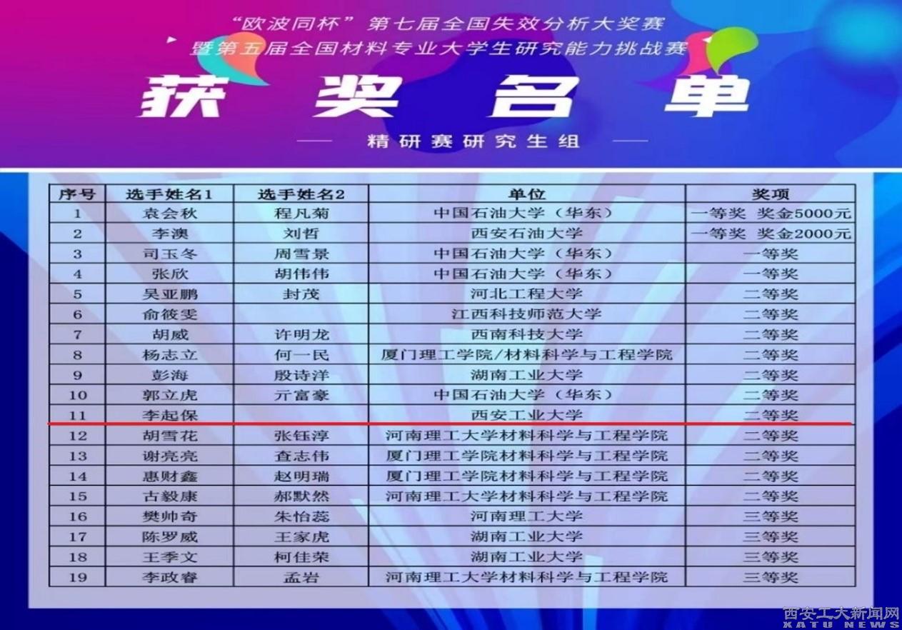 材化學院李起保同學獲精研賽研究生組二等獎,陳白陽同學獲創新賽專業組二等獎,高培虎教師獲優秀指導教師稱號。