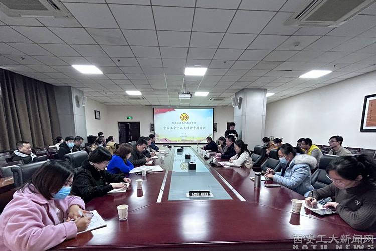 (本網訊)12月1日,校工會在圖書館三樓會議室組織開展了中國工會十八大精神工會干部專題培訓。校工會委員、經費審查委員會委員、女工委員會主任委員及分工會干部參加培訓。校黨委副書記梁云鶴出席并講話。會議由校工會主席姚穎主持。