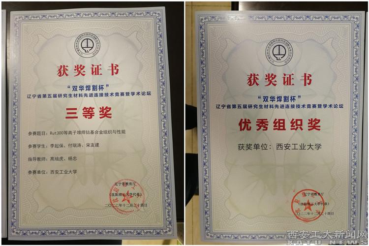 經(jīng)過網(wǎng)絡遠程評審、研究生答辯、專家現(xiàn)場評分等環(huán)節(jié),西安工業(yè)大學四支參賽隊伍均獲獎。其中由楊忠老師和高培虎老師指導,研究生李起保、付瑞濤、宋友建共同完成的作品《Rut300等離子堆焊鈷基合金組織與性能》榮獲三等獎;陳白陽、趙大明、張波共同完成的作品《蠕墨鑄鐵等離子堆焊鐵基合金組織與性能》榮獲優(yōu)秀獎;黨國棟、金燦、范虎共同完成的作品《TC4鈦合金表面激光熔覆錫青銅組織性能》榮獲優(yōu)秀獎;劉杰、吳漢婷、孫晨共同完成的作品《Q345等離子焊接工藝對接頭組織性能的影響》榮獲優(yōu)秀獎;西安工業(yè)大學獲得優(yōu)秀組織獎。