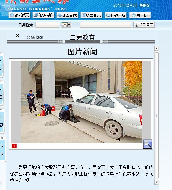 為更好地給廣大教職工辦實事,近日,西安工業大學工會聯絡汽車維修保養公司現場設點辦公,為廣大教職工提供專業的汽車上門保養服務。(楊飛 喬海東)