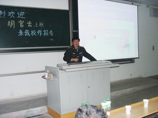 會場座無虛席,本校大學生軍事協會和建筑工程系學生200余人聆聽了講座。胡關云上校精辟的講解博得了同學們的陣陣掌聲。這次專題講座開闊了同學們的視野,激發了同學們的愛國主義情感和危機意識。