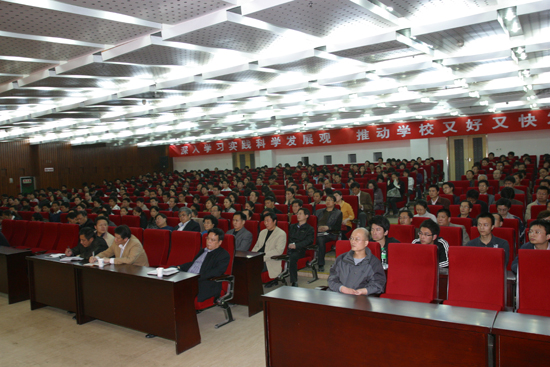 最后,賽書記強調指出,開展深入學習實踐科學發展觀活動,是當前我校政治生活中的一件大事。要深刻認識開展深入學習實踐科學發展觀活動的重大意義,增強學習實踐、貫徹落實的自覺性和堅定性,在省委的堅強領導下,以高度負責的態度,改革創新的精神,求真務實的作風,統一思想、統一行動,扎實推進學習實踐活動的深入開展,確保取得實效。要把學習實踐活動當作推動我校各項工作的強大動力,切實促進我校改革發展再上新臺階,再上新水平。