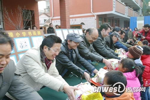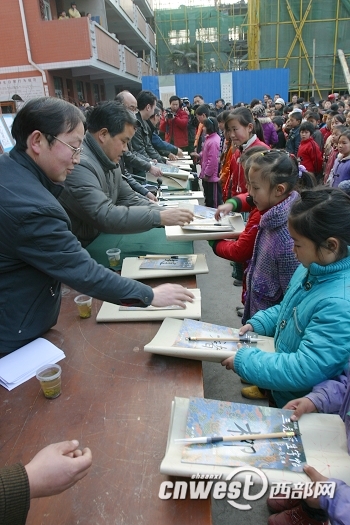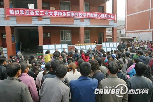 (本網訊)西安工業大學積極響應陜西電視臺大型媒體慈善活動“朝陽行動2009 震區家庭計劃”,1月15日、16日,該校書法專業師生代表驅車數百里,來到秦嶺深處的陜西略陽縣地震災區,為橫縣河中心小學的學生送去了學習用品和新年禮物,同時為熱愛書法的學生贈送了毛筆、宣紙和字帖等書法用品。活動吸引了眾多媒體關注,中央電視臺、西安電視臺、西部網、文化藝術報、現代軍工報等均做了深入報道。