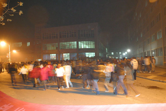 演練現場,隨著丁養斌副書記宣布演練開始,幾股濃煙從1#、2#學生公寓漫出,“火災”隨時有蔓延趨勢,情況萬分危急。保衛處、宿舍管理人員發現險情后,通知廣播臺拉響警報,并按照學校處置火災預案迅速組織對該樓人員進行疏散并開展搜救工作。3分鐘后,疏散及搜救工作結束,居住在該樓的4300余名學生安全撤離“火場”,各院系總支書記、輔導員迅速到達現場指揮學生疏散,11500余學生被有序疏散至指定安全地帶。與此同時,保衛處總值班室在接到報警后,迅速調動警車、電動巡邏車和應急分隊人員趕往“火災”現場,按照應急預案展開滅火行動;校醫院設立臨時醫療救助站,醫護人員隨時待命。5分鐘后,“大火”被完全撲滅,險情全部解除。