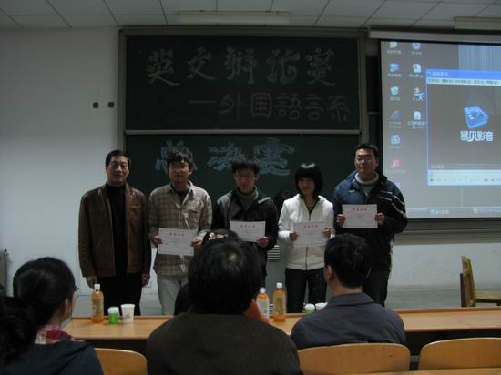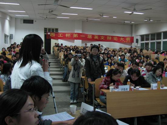 電信學(xué)院三年級與電信學(xué)院四年級代表隊在冠亞軍爭奪中展開了一場精彩而激烈的“口舌大戰(zhàn)”。辯論雙方針對“全才和專才哪個更適合激烈競爭的社會需要”展開了激烈地爭辯。辯手們自信而激昂的陳述和團(tuán)隊協(xié)作精神給觀眾留下了深刻印象,賽后評委精彩的英文點評更讓人受益匪淺。