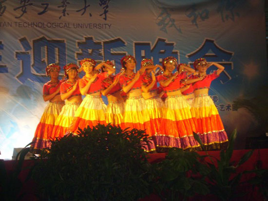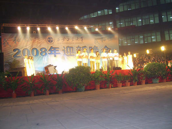 (本網訊)10月12日晚,由西安工業大學團委主辦、校大學生藝術團和學生會承辦的西安工大2008年迎新晚會在未央校區經緯廣場隆重舉行。校黨委書記賽云秀、校長劉江南、副校長張君安蒞臨晚會,雁塔校區、北信學院、各職能部門及各院系的黨政領導參加了晚會。