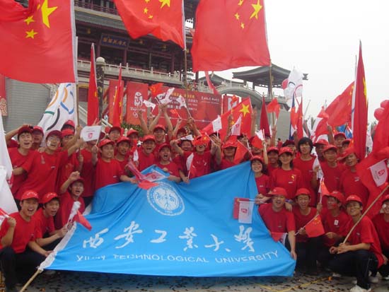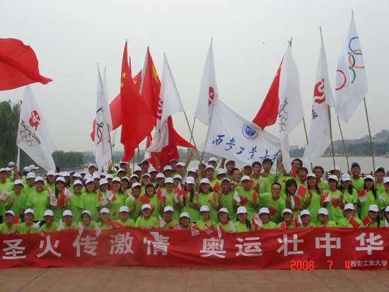 火炬?zhèn)鬟f現(xiàn)場,西安工大學(xué)生方陣組織有序、精神飽滿、彩旗飛舞、氣氛熱烈,“中國加油、北京加油、奧運(yùn)加油”、“點(diǎn)燃激情傳遞夢想”的吶喊聲響徹大唐芙蓉園上空,充分表達(dá)了師生們對(duì)奧運(yùn)的期盼和對(duì)祖國的祝福。現(xiàn)場的同學(xué)們激動(dòng)地說:火炬?zhèn)鬟f讓我們感受了奧運(yùn)的無限激情和魅力,也讓我們?yōu)樽鎳陌l(fā)展和強(qiáng)大感到激動(dòng)和自豪。2008北京奧運(yùn)會(huì)即將召開,我們共同期待中國向世界展示自己獨(dú)特的風(fēng)采,也祝愿北京奧運(yùn)會(huì)圓滿成功!