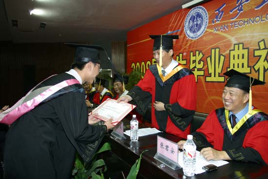 (本網(wǎng)訊)7月2日上午,西安工業(yè)大學(xué)隆重舉行2008屆學(xué)生畢業(yè)典禮。校黨委書(shū)記賽云秀、校長(zhǎng)劉江南、黨委副書(shū)記丁養(yǎng)斌、副校長(zhǎng)張君安、劉建勛,校長(zhǎng)助理陳樺及校辦、學(xué)生處、教務(wù)處、團(tuán)委、各院系領(lǐng)導(dǎo)出席了典禮。黨辦、校辦主任李智軍同志主持儀式。