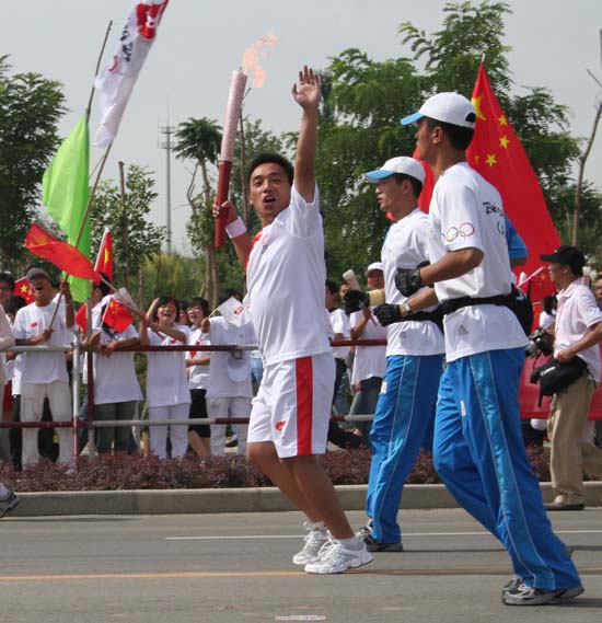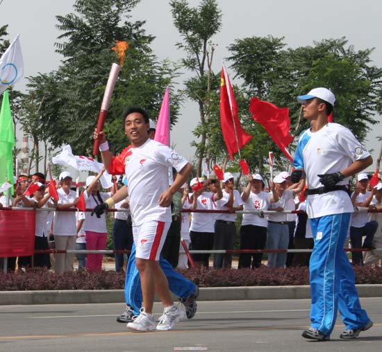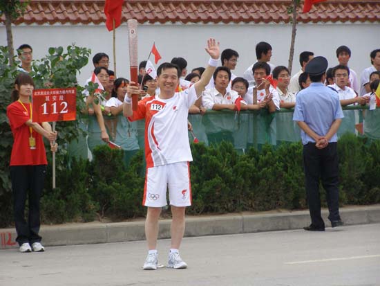 7月2日上午,奧運圣火陜西境內接力傳遞活動在延安市拉開序幕。傳遞路線全長6、3公里,共有208名火炬手。李建平教授意氣風發地跑完了第112棒。