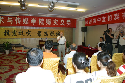 (本網訊)連日來,汶川地震災情牽動著西安工業大學師生員工的心。5月31日,在西安曲江亮寶樓,西安工大又將百余幅師生書畫作品公開拍賣,所得款項20000元直接匯入陜西省紅十字會賑災專用帳戶,為災區的兄弟姐妹送去溫暖。