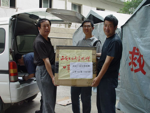 (本網(wǎng)訊) 汶川大地震后,西安工業(yè)大學(xué)師生踴躍為災(zāi)區(qū)捐款捐物,近日,又向?yàn)?zāi)區(qū)捐贈(zèng)了五千余只口罩。