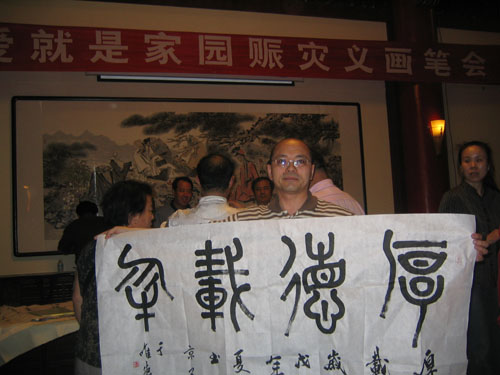 (本網訊)汶川地震后,從5月13日至今,西安工業大學藝術與傳媒學院院長于唯德教授積極投身抗震救災志愿活動,在中國愛心工程委員會、中國扶貧基金會、中國書法家協會、陜西省委宣傳部、陜西省文聯、陜西省書法家協會、西安市于右任書法學會等主辦的賑災義寫義賣活動中,捐獻現金并義賣出數十幅書法作品,為災區人民送去一份愛心。