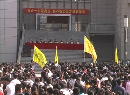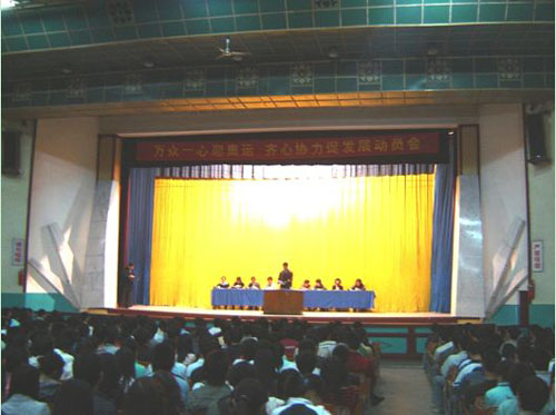 校黨委書記賽云秀、黨委副書記丁養斌做了主題為“萬眾一心迎奧運,同心協力促發展”的講話。從舉辦奧運會的意義、當前我們面臨的形勢、任務和對廣大學生的要求三個方面進行了動員,要求廣大學生刻苦學習,努力成才,用實際行動表達對祖國的熱愛之情,廣大學生干部要充分發揮模范帶頭作用,做出表率,使同學們理智地表達愛國熱情。