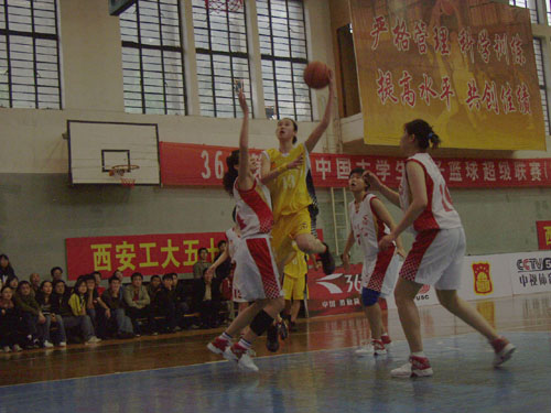 今天將迎戰北方賽區第一階段的最后一支隊伍——青海師范大學。青海師范大學是第二屆中國大學生女子籃球超級聯賽的冠軍隊伍,是一個很強的競爭對手,為此,西安工大領隊和教練員精心準備了這場比賽的戰術安排。