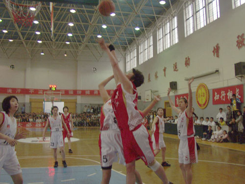 比賽一開始,雙方就打得異常激烈,只見西安工大5號董揚眉縱身一躍,輕松把手中的球撥給自己的同伴,然后球又迅速傳回到她手中,5號董揚眉穿過對方的嚴密防守,起跳投籃命中,頓時全場歡呼。西安交大不干示弱,在西安工大4:0領(lǐng)先的情況下,頂住全場的壓力,調(diào)整戰(zhàn)術(shù),在外線尋找突破口,投中一個3分,把比分縮小到1分。在第一節(jié)快結(jié)束時,西安交大一個完美的壓哨3分球,最終將第一節(jié)的比分鎖定在21:22。