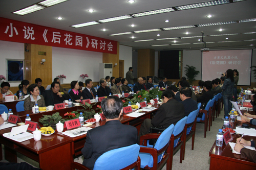 西安工大人文學院院長、陳忠實當代文學研究中心常務副主任、青年評論家馮希哲最后做總結發言。他首先介紹了本校地域文學與文化方向近兩年取得的學術成果,然后提出自己的意見,認為《后花園》是繼“陜軍東征”后,最有實力的作品之一,也是近兩年陜西作家群創作佳作疊出,在“井噴”現象中,最能代表陜西作家群創作實力和探索成果的一部具有研究價值和閱讀意義的優秀作品。他還從《后花園》文本所呈現出的多層隱喻闡釋切入,認為這部作品所呈現的話語姿態,為新時期以來知識分子敘事文本富有有個性和咀嚼性的東西,是個新動向,應當引起評論界的關注。作品沒有著力去追求人物形象的典型化、矛盾發展的復雜化和敘事的嚴密邏輯性,而以詼諧幽默的言語方式通過宋隱喬的“尋夢”,營造出交錯復雜的時空來結構一個非主流價值主導,其中隱涵著豐富喻指性的意義世界。男主人公宋隱喬在偶然中的帶有傳奇色彩的經歷與感受、心態,并不完全是為了情節需要,他撕下了道德袈裟,用自訴與自為的行為反叛了新時期以來知識分子形象要么崇高要么被壓抑要么變異的傳統,還原了知識分子人性的本來面目和內質結構,喻示出浮世中以宋隱喬為代表的青年知識分子精英在傳統與現代、現代與后現代文化嬗變中,人性的放逐與守成、精神的迷失與眷念、道德的失范與重建的矛盾性與復雜性,這恰恰是當下的青年知識分子所面臨的群體性文化心態具有共適性的迷惘癥所在。同時作者智慧機巧地運用似乎錯亂的時空背景來揭示造成如此尷尬背后的政治、經濟、文化等諸多方面的潛在因素。雖然作者潛意識想塑造一位水一樣美,集古典與現代、高雅與樸素等美德于一身,美侖美奐的女性羅云衣,但其理想化指向并未能代替楚朝亭在太陽下晾曬心理的隱痛,用靈魂“追趕太陽”的暗喻性。文本中的“后花園”豈止是自然中的“后花園”,更是價值沖突中人類精神失落尋尋覓覓當中的“靈魂后花園”。他最后強調,如果用傳統的接受眼光和心態把握這部作品,不深入到文本的內在意義世界,無形中會使《后花園》的價值本體受損,更難以接近文本最隱秘的真實意圖。