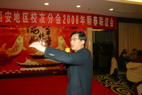 聯誼會由國際交流與對外合作處(校友總會)處長路金龍主持,65205班校友、著名作家孫見喜編審代表在座的老中青校友致辭,表達了感謝母校的培養和教育、懷念母校難忘歲月的愉快和激動的心情,并祝福母校成長壯大。黨委書記賽云秀教授代表學校黨政班子發表了熱情洋溢的講話,向各位校友介紹了目前學校的情況,通報了2007年學校主要工作,展望了2008年學校中心工作,并希望我們校友一如既往繼續熱忱關心和支持母校,為學校的改革發展做出應有的貢獻,最后賽云秀書記代表學校向各位校友并通過校友向家人帶去新春的祝福。劉江南校長代表學校和校友總會為校友表達深深的祝愿。校友們一起共訴情懷,整個聯誼活動在熱烈、歡快氣氛中進行。