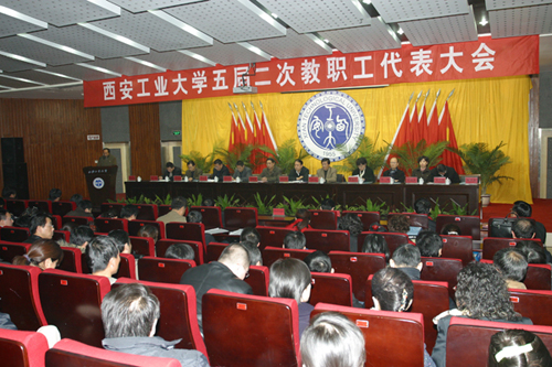(本網訊)1月5日,西安工業大學五屆二次教職工代表大會在未央校區隆重召開。全體教職工代表、列席代表170余人參加大會。大會主席團成員賽云秀、劉江南、簡林根、徐雪芹、楊灝、呼曉青、劉白林、謝立仁、王大明、朱育權、李選民、趙至善、韓軍在主席臺就座。