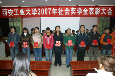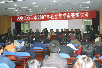 (本網(wǎng)訊)11月30日,西安工業(yè)大學(xué)召開2007年社會獎學(xué)金表彰大會。校黨委書記賽云秀,校長劉江南,黨委副書記簡林根、丁養(yǎng)斌,副校長張君安、劉建勛、劉衛(wèi)國,工會主席徐雪芹,校長助理陳樺到會。黨辦、校辦主任李智軍主持會議。