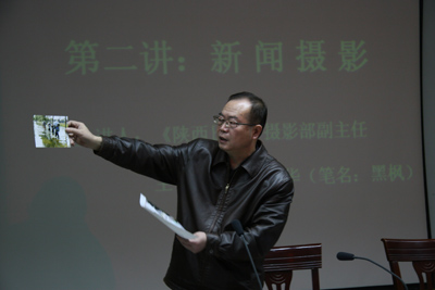 開班典禮之后,《陜西日?qǐng)?bào)》主任記者王鳴琦主講了第一講《新聞采寫方法與高校報(bào)道》。王老師從新聞的概念、分類、寫作的基本要求、消息的種類、新聞的結(jié)構(gòu)與高校報(bào)道等六個(gè)方面,理論聯(lián)系實(shí)際地介紹了新聞寫作的基本知識(shí)和要點(diǎn)。22日下午的第二講由《陜西日?qǐng)?bào)》攝影部副主任張利華主講。張老師結(jié)合大量的攝影實(shí)踐講授了新聞攝影的理論知識(shí),讓大家深受啟發(fā)。最后,宣傳部宣傳業(yè)務(wù)主管騫軍榮結(jié)合具體工作,就如何做好新聞通訊員向參加培訓(xùn)人員提出了要求。