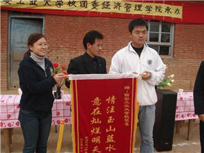 經濟管理學院團總支書記張嵐老師首先代表學校致辭,并向車賀小學學生發放學習用品。藍田縣縣團委李潔同志、車賀小學校長分別對西安工大學生的愛心捐贈活動致感謝詞并頒發錦旗。其后,西安工大的同學們獻上精心準備的文藝節目讓全場掌聲四起,而車賀小學的同學們表演的節目更是讓現場掌聲不斷。大學生們還走訪了部分群眾,進一步了解國家的惠民政策以及人民群眾的生活改善情況,向他們宣傳黨的政策和精神。