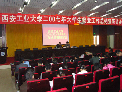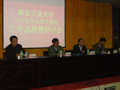(本網訊)11月5日,西安工業大學召開2007年大學生就業工作總結暨研討會。會議圍繞“認真學習貫徹十七大會議精神,扎實推進大學生就業工作”主題,對本校大學生就業工作進行總結和部署。黨委書記賽云秀、黨委副書記簡林根、丁養斌,副校長張君安出席了會議;各院系、北方信息工程學院黨政領導和畢業班輔導員及學生代表、有關部門主要領導到會。會議由丁養斌副書記主持。