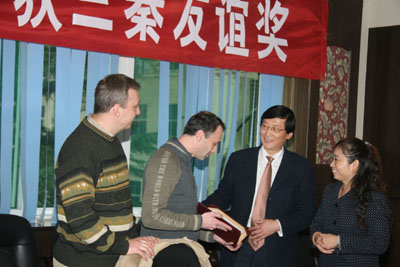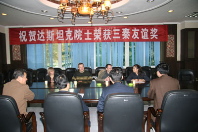 劉衛國副校長首先介紹了阿納托爾·達斯坦克的事跡并宣讀袁純清省長的賀信,劉江南校長向阿納托爾·達斯坦克院士的代表基瑪·格羅索夫博士轉發了陜西省人民政府授予的“三秦友誼獎”證書。 基瑪·格羅索夫博士代表阿納托爾·達斯坦克院士感謝所在的西安工業大學以及陜西省人民政府,表示今后將更加努力合作,為中國的經濟建設服務。