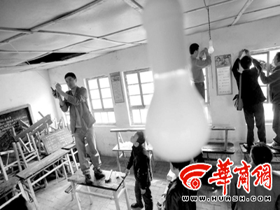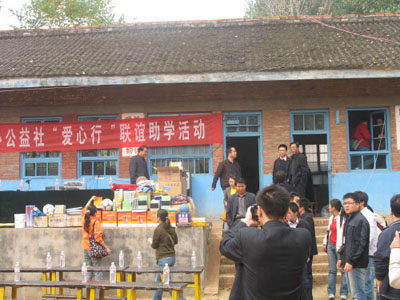 一到學校,大家就忙著拉桿架線,將帶來的照明設備安裝到各個教室,并將學習用品、體育器械、音像設備捐獻給該校。公益愛心社是西安工大人文學院學生自發組織成立的,以倡導公益愛心為宗旨,有近20名大學生都參與到這個社團。