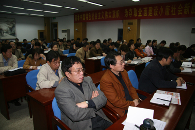 戴教授緊扣胡錦濤總書記代表十六屆中央委員會向十七大所作的報告,從堅定不移地走中國特色社會主義道路,深入貫徹落實科學發(fā)展觀,按照總體布局要求全面推進中國特色社會主義事業(yè)發(fā)展以及以改革精神全面推進黨的建設等四個方面深入淺出的宣講了黨的十七大報告,簡潔明晰,舉證詳恰,受到了與會同志的熱烈歡迎。