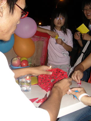 經過大家精心的策劃與準備,夜色中的食堂門口,被彩燈、彩帶圍成了喜慶的“團圓街”,燈火與夜空的玉盤相輝映,給校園帶來了濃濃的節日氛圍。月到中秋分外明,為了讓廣大學生特別是家庭經濟困難學生在這個特殊的日子過得開心、快樂,同時感受家的溫馨,漢文化研究社充分用自己的特長,為大家準備了豐富的文化活動——“豎中秋”、“放天燈”、“盼月破”、“賞月”,還有月餅贈送及精彩的漢服展示。同學們帶著幾分好奇積極參與到活動中去,大家說這個中秋節過得最有意義,因為在娛樂的同時對中國的文化也有了一個了解,希望以后這樣的活動能多辦幾次。