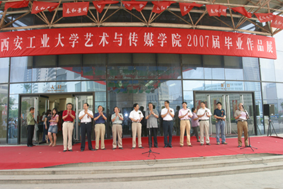 6月7日上午,西安工業大學在陜西省美術博物館舉辦2007屆藝術與傳媒學院畢業生作品展。中共陜西省委宣傳部副部長、陜西省文聯黨組書記劉斌,中國書法家協會顧問、陜西省書法家協會名譽主席鐘明善,中國書法家協會理事、陜西省書法家協會主席雷珍民,陜西省文史研究館館長李炳武,陜西省書法家協會副主席、陜西省美術博物館館長李杰民,北京師范大學書法專業教授倪文東,陜西省書法家協會副主席、終南印社社長趙熊,陜西省書法家協會副主席薛養賢,西安美術學院設計系主任彭程,西安建筑科技大學藝術學院院長楊豪中,西北大學藝術學院院長龐永紅等嘉賓,我校黨政領導賽云秀、劉江南、張君安,中央駐陜及省內共9家媒體單位的新聞記者,以及西安交通大學、西北大學、西安建筑科技大學、陜西師范大學、西安美術學院、我校師生代表出席了展覽開幕式。開幕式由西安工業大學藝術與傳媒學院院長于唯德主持。