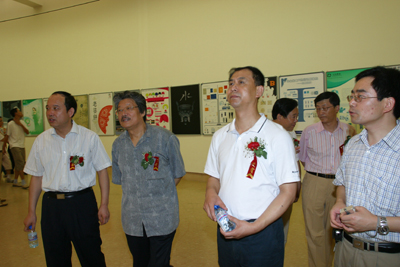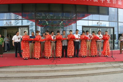 劉斌、鐘明善、雷珍民、李炳武等嘉賓,我校領導賽云秀、劉江南、張君安等共同為2007屆藝術類畢業生作品展覽剪彩。